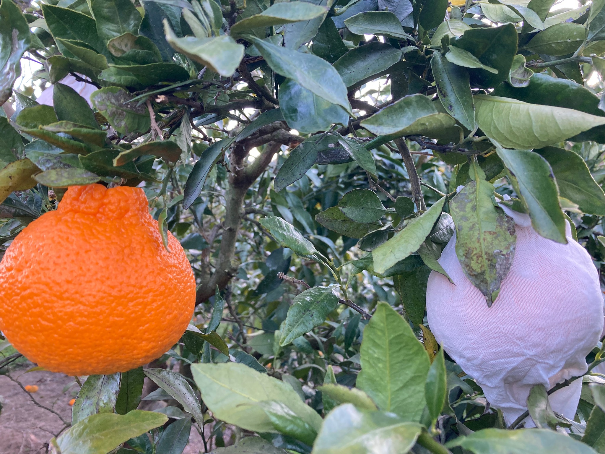 風も強い日があったので、多少キズの具合が気になりましたが、秋にかけた袋のおかげでほぼほぼ問題無く収穫ができていると思います。